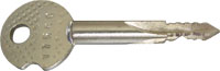 1. Ключ для цилиндрового, штифтового замка (народное название “английский”). Секретность замка с таким ключом одна из самых низких. Вскрывается такой замок всеми известными способами. Самый простой из них, это подбор ключа. Замки данного типа предназначены для помещений, не имеющих материальных ценностей. Наличие такого замка в квартирной двери не защищает её, а наоборот притягивает вора простотой вскрытия. Ключ можно смело оставлять у двери под ковриком так как такой замок может остановить только "честного человека". Время бесшумного вскрытия замка преступниками 2-3 минуты.