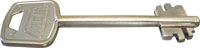 4. Ключ для цилиндрового дискового замка. Замки с таким ключом начали выпускаться у нас по лицензии фирмы ABLOY в конце 70-х годов. Но в отличие от первоисточника наши замки делались(и делаются) упрощённым методом с использованием технологии порошковой металлургии. Секретность замка хорошая, но это не спасает от вскрытия обычным, слесарным инструментом. Замки данного типа предназначены для помещений, не имеющих материальных ценностей. Наличие такого замка в квартирной двери не защищает её, а наоборот притягивает вора простотой вскрытия. Ключ можно смело оставлять у двери под ковриком.